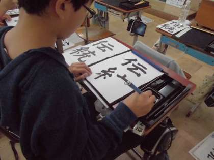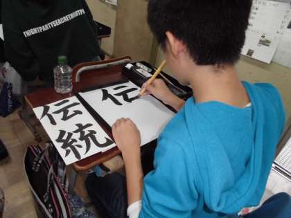 今日は『伝統』という漢字を書きました。書いてみると『統』が難しかったようで苦労していました。「難しくてもあきらめない」これが川岡東の『伝統』ですよね。