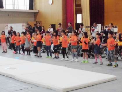 オープニングセレモニーには,川岡東児童館の子どもたちが参加しました。ダンスやけん玉でオープニングを盛り上げてくれました。