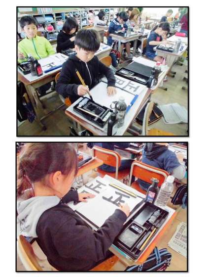 3年生は『正月』と書きました。まだ11月でしたが,お正月気分で筆をにぎりました。