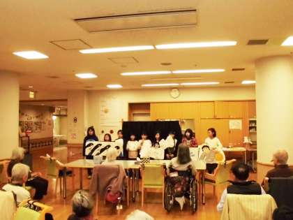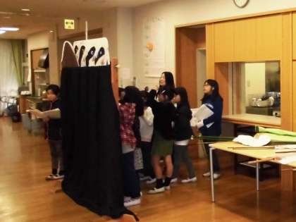 部活動『青い鳥』のメンバーが「かつら川ふれあい祭」で発表してくれた「いなばの白うさぎ」のペープサート劇。今日は桂川園に行って利用者の皆さんに披露しに行きました。