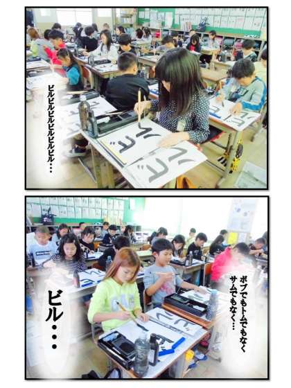 今日の書写はカタカナで『ビル』と書きました。文字の形をよく見て文字の特徴をつかんでいきます。