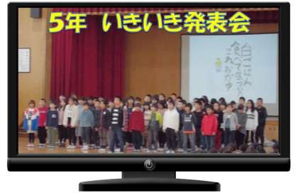 11月5日〜8日に行った花背山の家。そこでの思い出や学んだことを全校の前で発表しました。野外炊事や食堂でのバイキング,火おこし,キャンプファイヤー,冒険の森,ボルダリングなどたくさんの思い出を発表し,最後に『福笑い』を熱唱しました。