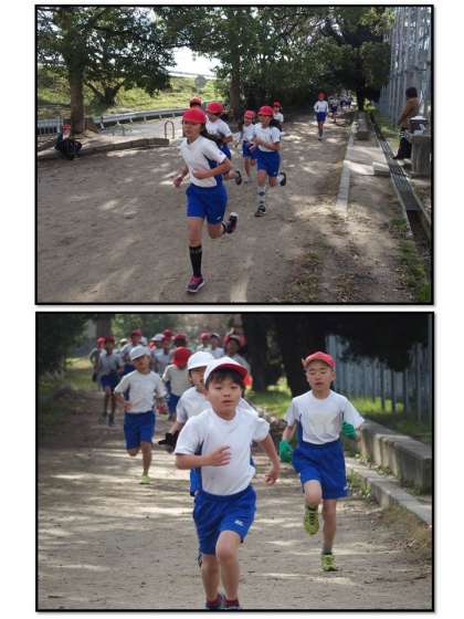中学年のマラソン大会は15分間走です。15分という時間は中学年の子どもたちにとっては,あまり走ったことのない未知の領域。しかし最後まであきらめることなく,ゴールという栄光に向かって歯をくいしばって走る3・4年生の姿に,確かな成長を見ることができました。