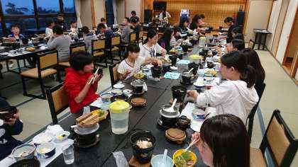 待ってました,夕食の時間です。お刺身がおいしそう。それにしても豪華ですね。みんなで過ごすかけがえのない一日。たくさんの楽しい思い出をつくって,帰っておいで。