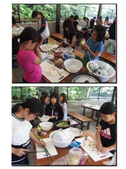 食材を渡された調理班。野菜をきれいに洗い,包丁で切っていきます。家でお手伝いしている子もそうでない子も,慣れている子も慣れていない子も,みんな一生懸命にがんばりました。糸こんにゃくを一本一本丁寧に切っていくその姿・・・感動しました!