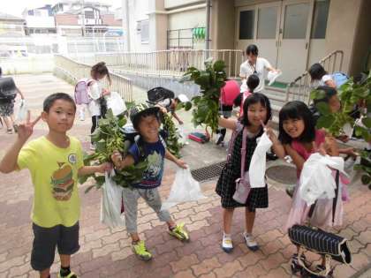 地域の方々にお世話になって植えた枝豆。その枝豆を地域の方々がお世話してくださって収穫してくださいました。できあがった枝豆に3年生は目をキラキラ。頭の中は枝豆をどうやっておいしくいただくかでいっぱいです。