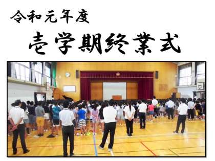 1学期の終業式を行いました。1学期,たくさんのことがありました。たくさんのことを学びました。今日,子ども達は『あゆみ』を持ち帰ります。1学期のがんばりをほめていただくと共に,お子様と2学期の目標を立てていただければと思います。