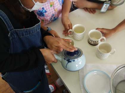 家庭科の学習でお茶を入れました。自分で入れたお茶は,とてもおいしかったです。