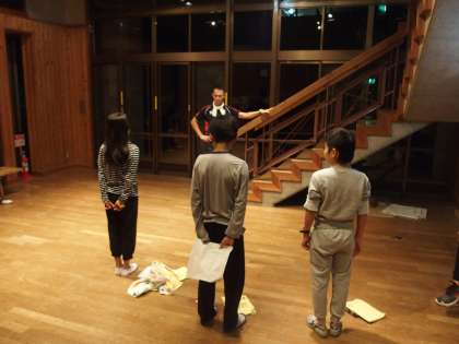 明日の朝の「合同朝の集い」の学校紹介を担当するリーダー3名。リーダーの夜は,やはり長い・・・。