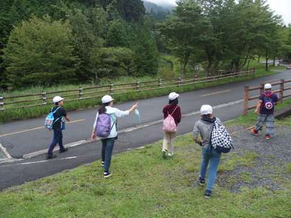 活動ができるかどうか心配されましたが,朝食を食べ終わるころには雨もあがり,無事スコアオリエンテーリングを開始することができました。グループで協力して15のポイントをまわり,クイズを解いていきます。