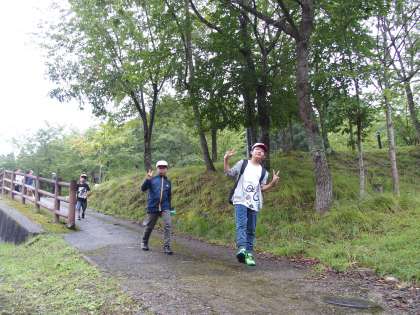 坂道を何度も上り下りしてまわるので,みんなだんだん疲れてきました。それでも声を掛け合いがんばります。