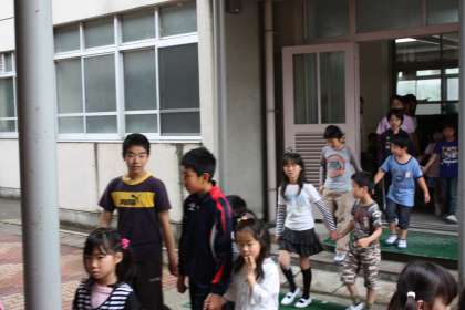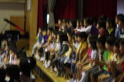 「にらめっこ」・「学校○×クイズ」・「全校合唱」等もしました。