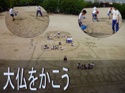 学習したことを生かして運動場に等身大の大きさの大仏をかきました。