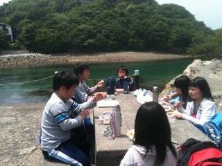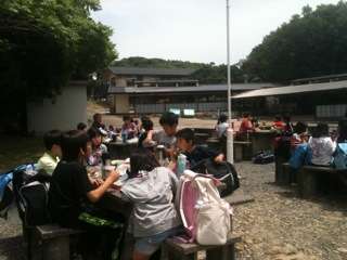 みんな,お弁当をおいしそうに食べでいます