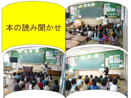 毎週月曜日に「おひさまひろば」の方に来ていただき,本の読み聞かせをしていただきます。地域の方に読んでいただく,初めての読み聞かせ。しっかり体育座りをして,集中して聞いていました。