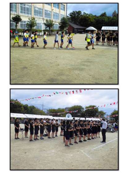 第37回川岡東学区民体育祭が行われました。桂川中学吹奏楽部の演奏で各自治会のみなさんが入場しました。本校6年生児童による選手宣誓も終わり,区民体育祭がいよいよ始まります!!