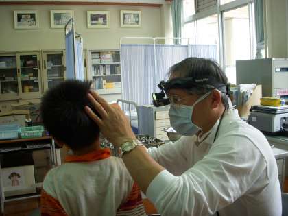 6月1日と3日に耳鼻科検診を行いました!子どもたちは,校医の大八木先生に診ていただきやすいように,髪をしっかり耳にかけたり,耳→鼻→口と自分で方向を変えたりすることができていました。