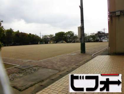 2年生のきょうしつからはうんどうじょうのむこうがわまでよく見えます。