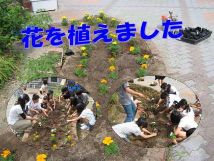 栽培委員会で花を植えました。きれいな花を見て子どもたちは大喜びでした。