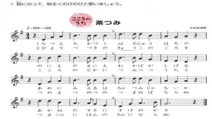教科書P17右下のQRコードを読み取ると,「茶つみ」の音楽が流れるので,明るい時間にぜひ歌ってみてください。