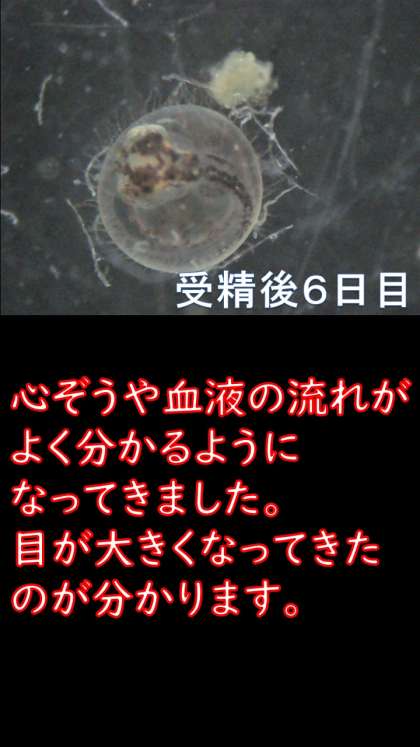 たまごの中でどんどん体の形がメダカに近づいてきているのが分かりますね。あとどれぐらいでたまごを破って出てくるのでしょうか?メダカのたまごちゃんが成長していく様子を想像するだけで,今日のご飯が5杯はおかわりできそうです。