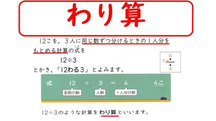 「わり算」は同じ数ずつ分ける時に使う計算です。