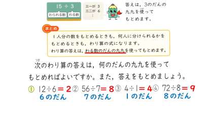 「わり算」のポイントは,わる数のだんの九九を使うということ!
