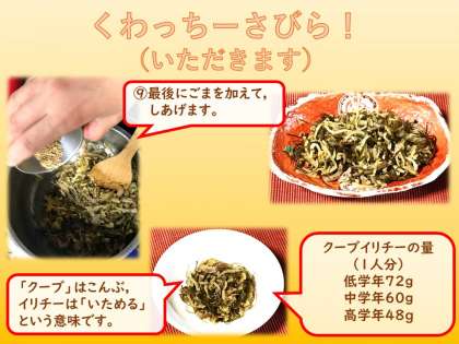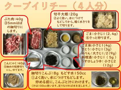 ホームページでは,4年生の先生もおすすめの給食こんだて,『クーブイリチー』をしょうかいします。