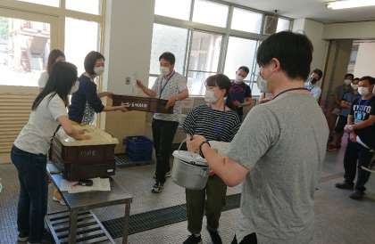 来週からの給食開始に向けて,教職員研修を行いました。