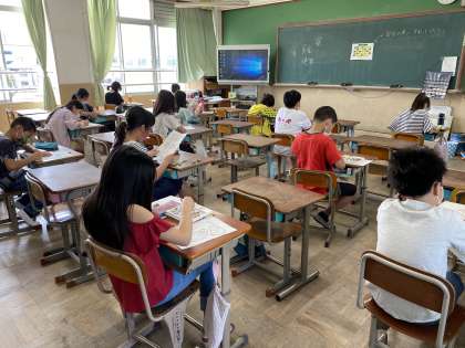 今日はA班の人達の登校日です。学級のルールを確かめたり,みんなを守るための14の約束を確かめたり,自己紹介のカードを書いたりして,4時間目まで過ごしました。やっぱり子ども達のいる教室は,いいですね。
