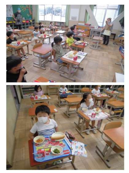 「さあ,Aはんのみなさん。きょうのきゅうしょくはどうでしたか?おいしかったですか?はじめてのパンきゅうしょくはどうでしたか?」