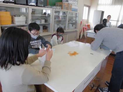 なかよし学級では,図画工作科で,ある野菜の皮を使って布を染めてみました!