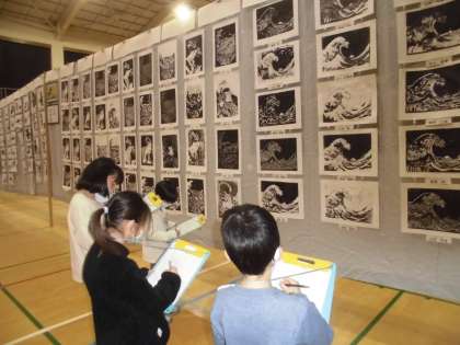 「4年生はこんな作品を作るんだ」「5年生の版画はの細い線はどうやっているのかな」など,興味津々に鑑賞していました。