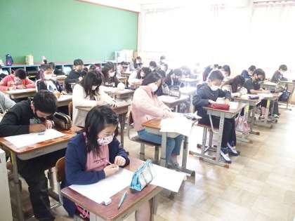 5年生で学習したことを思い出し,プリントに取り組む6年生。その姿に,『学習に対する熱い情熱』『勉強に対するほとばしる意欲』『分かった時のホットな気持ち』を感じることができました。