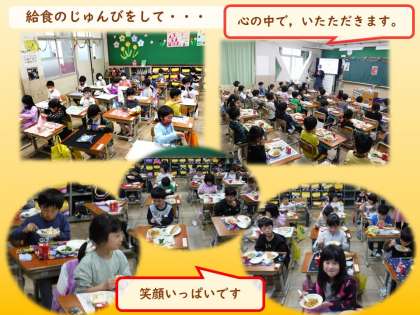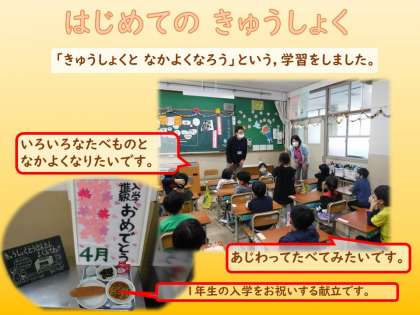 『きゅうしょくと なかよくなろう』という勉強で,給食となかよくなる方法を知って,さらに食べたい気持ちが高まります。