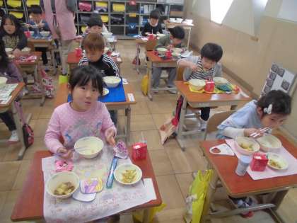 1年生は心の中で「給食さいこう!!」と思ったことでしょう。これからの給食が楽しみですね。