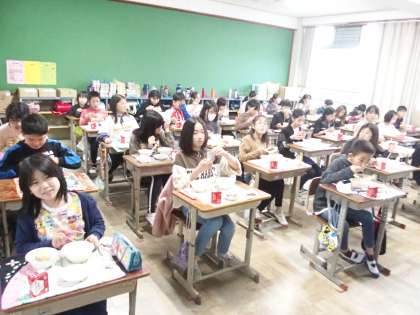 「ごはん」は京都府で作られた米(白米)。「麦ごはん」と大麦を白米にまぜたごはん。「げん米ごはん」はげん米を白米にまぜたごはん。「はいが米ごはん」ははいが米を白米にまぜたごはんです。どのご飯もおいしいので,食感や味のちがいを見つけながら,よくかんで,味わってたべるといいですね。