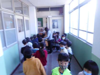 他のクラスの授業の邪魔をしないように,全員忍者になって,音を立てずにぬき足さし足しのび足。静かに校舎内を探検してまわりました。