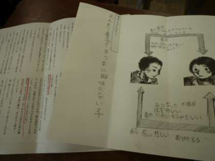 本文を読んで人柄や心情がわかるところに線を引き,登場人物について書いています。それらのことをパンフレットにまとめ,友達と交流しながら完成に向けて頑張っています!