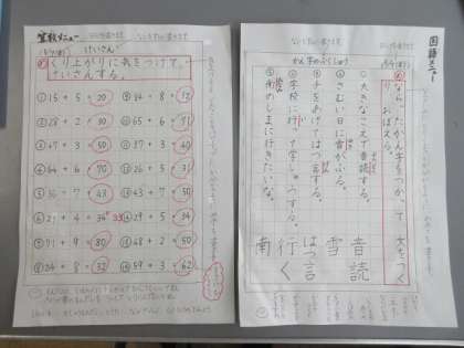 子ども達には,ノートを渡し,国語と算数のどちらかを選んで,1ページ分取り組むように伝えました。