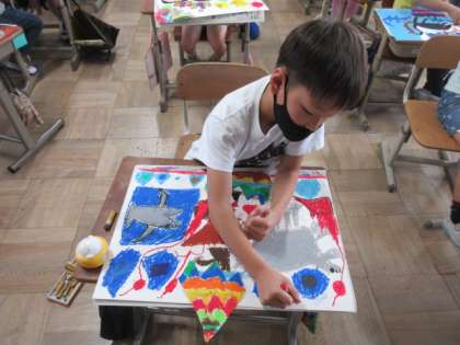 図画工作科で「ふしぎなたまご」の絵画作品に取り組んでいます。