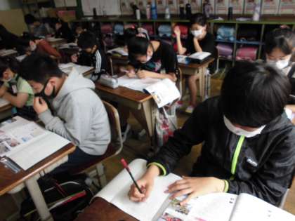 社会「震災復興の願いを実現する政治」の学習の様子です。