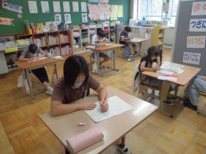 今日はひらがな・漢字名人大会!!今日まで宿題でも漢字やひらがなの練習に一生懸命取り組んできました。今日の本番では25分間集中して静かに丁寧に書くことができました。