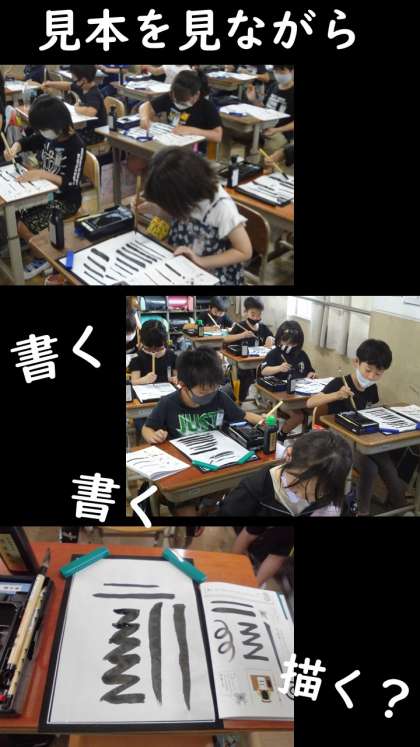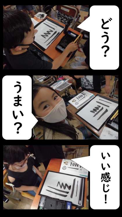 大筆を使って直線を書いたり曲線を書いたりしたことで,筆に慣れることができたはずです!