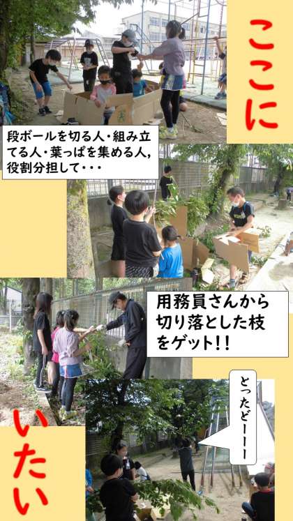というミッションのもと,みんなで力を合わせて段ボールを組み合わせたり,切ってつないだり,形を変えたりして家?部屋?秘密基地??のようなものを作り上げました。