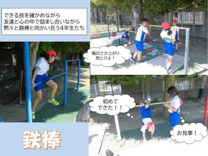 鉄棒では,もう少し頑張ればできそうな技に挑戦中。