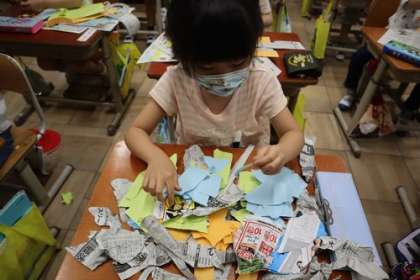 でも今回の図工は好きなだけ,どんな形でも破いていいよ〜!!!