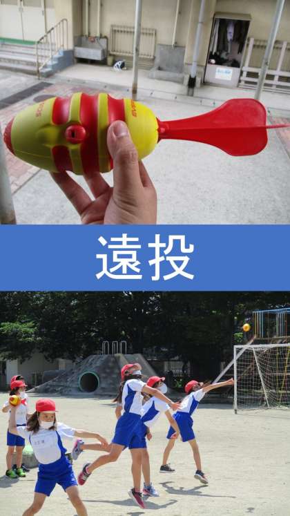 今日は,遠くに投げるための体の方向と助走,上手に投げると回転がかかってまっすぐ飛ぶということを学習しました。子どもたちが投げているのは「ジャベボール」というものです。上手く回転をかけて投げることができると「ヒューーー」っとホイッスルが鳴ります。どんどん投げて,遠くに投げれるコツをつかんでいきましょう!
