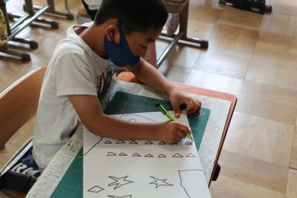 図工科『ひかりの プレゼント』の学習で,カッターナイフを使って作品を作っています。先週は初めてのカッターナイフの練習をして,いろんな形を切る練習をしました。