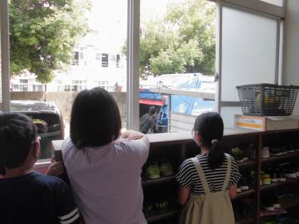 4年生の社会科では「くらしとごみ」の学習をしています。家や学校からでるごみ調べをしたり,集められたごみがどのように処理されていくのかを調べたりしています。学校にちょうどパッカー車が来て見学をすることもできました。大きな音を立ててたくさんのごみがパッカー車に吸い込まれる様子を興味をもって見ることができました。